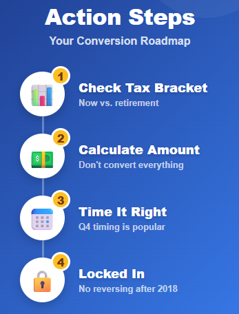 Time it right. Many people wait until Q4 to see their full-year income before converting.